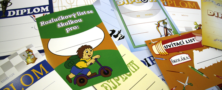 Diplomy si můžete vybrat v e-shopu, případně Vám zhotovíme vlastní grafický návrh. Diplomy zhotovujeme ve formátech A4 nebo A5.